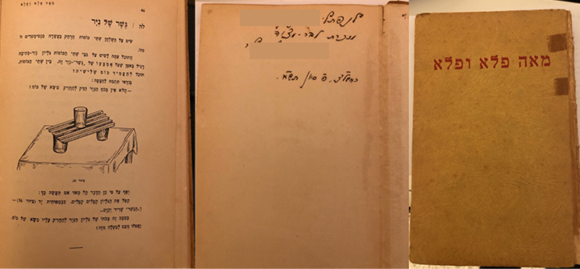ספר ניסויים ביתיים בשם “מאה פלא ופלא” שמצאתי זרוק בערמת גזם, המכיל הקדשה משנת תש”א – קרי 1941. כולל בשפה ארכאית את ניסוי גשר של נייר שמופיע גם באתר בגרסה מותאמת לזמננו | צילום: אבי סאייג