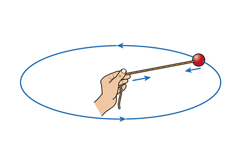 אם עקרון ההתמדה קובע כי כל חפץ ימשיך לנוע בקו ישר כל עוד לא פועל עליו כוח, המסקנה המתבקשת היא שכדי לגרום לחפץ לנוע בסיבוב, חייבים להפעיל עליו כוח. לכוח הזה שגורם לחפצים לנוע בתנועה מעגלית קוראים כוח צנטריפיטלי, והוא הכוח שמושך ללא הרף את החפץ הנע לעבר נקודה במרכז התנועה המעגלית. הכוח הזה מעקם את כיוון תנועת החפץ, כך שבמקום להמשיך בקו ישר לפי האינרציה שלו, הוא כל הזמן יפנה לכיוון המרכז. ומה מפעיל כוח כזה? יכולים להיות הרבה דברים. למשל, אם נקשור אבן לקצה אחד של חבל ונאחוז את קצהו השני, ואז נזרוק את האבן, היא תנוע במעגל מסביב ליד שלנו. במקרה זה, החבל הוא המושך את האבן למרכז ומונע ממנה לנוע בקו ישר. בשנייה שנעזוב את החבל או נשחרר את האבן – היא תנוע במהירות בקו ישר. זהו למעשה העיקרון עליו עובד הקלע בעזרתו דוד פגע בגוליית הפלישתי. בסקאלה גדולה יותר, הכוח הצנטריפיטלי שמאפשר את תנועת הירח סביב כדור הארץ הוא כוח המשיכה: כדור הארץ מפעיל כוח על הירח, ורק בגללו הירח ממשיך לחוג סביבנו ולא עף לו בחלל.