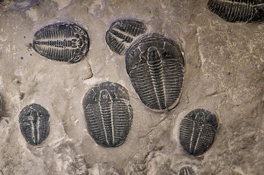 מהתבוננות במאובנים של יצורים ימיים שנמצאו בשכבות סלע חשופות על היבשה - ולא במעמקי הים - הגיע דה בופון למסקנות מרחיקות לכת על עברו של כדור הארץ. מאובנים של טרילוביטים, בעלי חיים ימיים, שנמצאו ביוטה, ארצות הברית | Marco Ansaloni / Science Photo Library