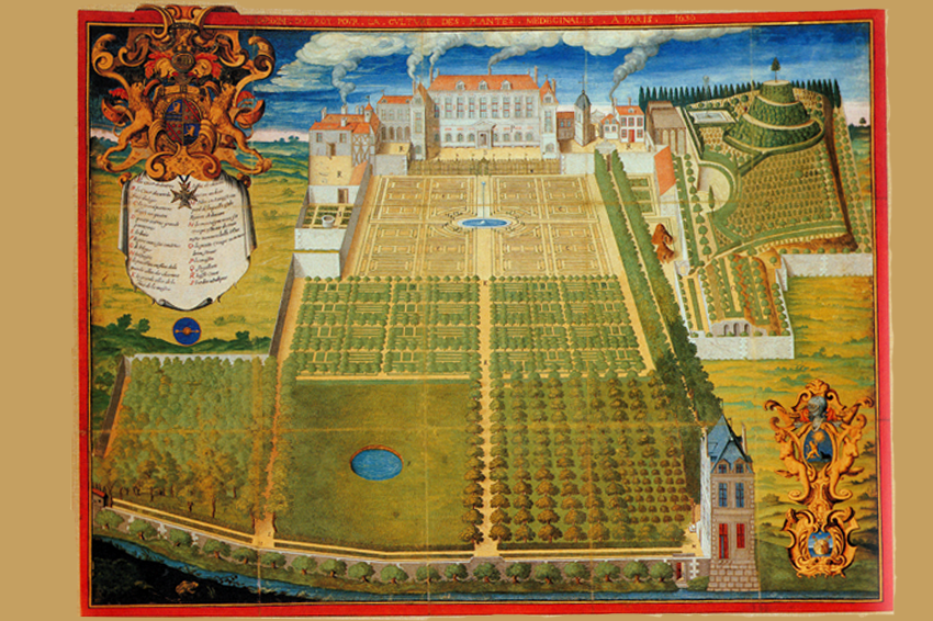 מהלך העבודה בגנים פיתח דה בופון רעיונות תיאורטיים לגבי המדע ותפקידו, לצד רעיונות מדעיים מקוריים. הגנים המלכותיים, בציור מהמאה ה-17 | ויקימדיה, Valérie75