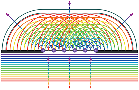 כאשר הגל, במקרה הזה אור, פוגש עצם קטן או חריר שממדיו דומים לאורך הגל עצמו, קרני האור מתעקמות ונוצר למעשה גל חדש. אילוסטרציה של תופעת העקיפה | Fouad A. Saad