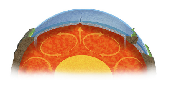 המבנה המעגלי נוצר כאשר סלעי מעטפת לוהטים וצמיגיים הנעים מחלקה העמוק של המעטפת לכיוון גבולה העליון מתקררים, הופכים צפופים יותר, ושוקעים חזרה. תנועת תאי הקונווקציה במעטפת כדור הארץ | Qa International / Science Photo Library