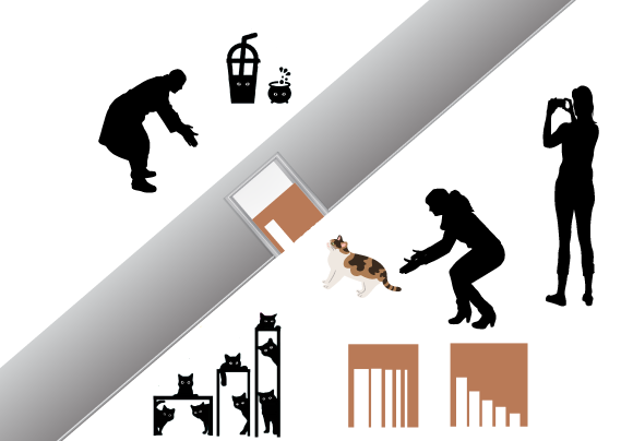 אחד מבני המשפחה שיחרר את החתול מצד אחד של קרטון ובו פתח, ובן משפחה אחר קרא לו מהצד השני. מימין למטה אפשר לראות את סוג החורים שנחתכו בקרטון | Shutterstock ותמונות מתוך המאמר