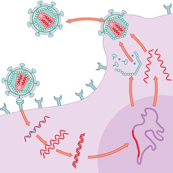 כל התרופות נגד HIV מבוססות על מחזור החיים שלו, ששונה מאוד מזה של נגיף אפשטיין-בר. מחזור החיים של נגיף HIV | אילוסטרציה: Peter Gardiner / Science Photo Library