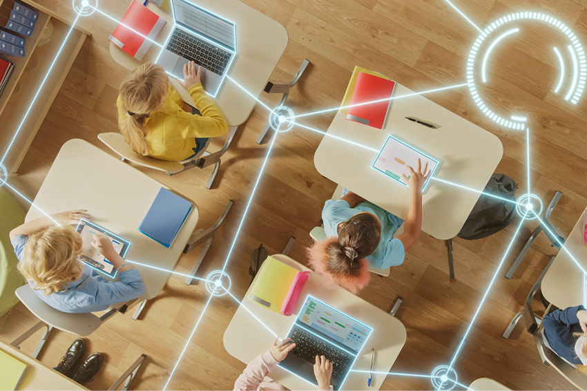 יש גם סכנות בשימוש לא מבוקר בבינה מלאכותית, במיוחד כמשמדובר על ילדים שעדיין לא פיתחו את היכולת להעריך באופן ביקורתי את התוצרים. ילדים בכיתה משתמשים במחשבים | Shutterstock, Gorodenkoff