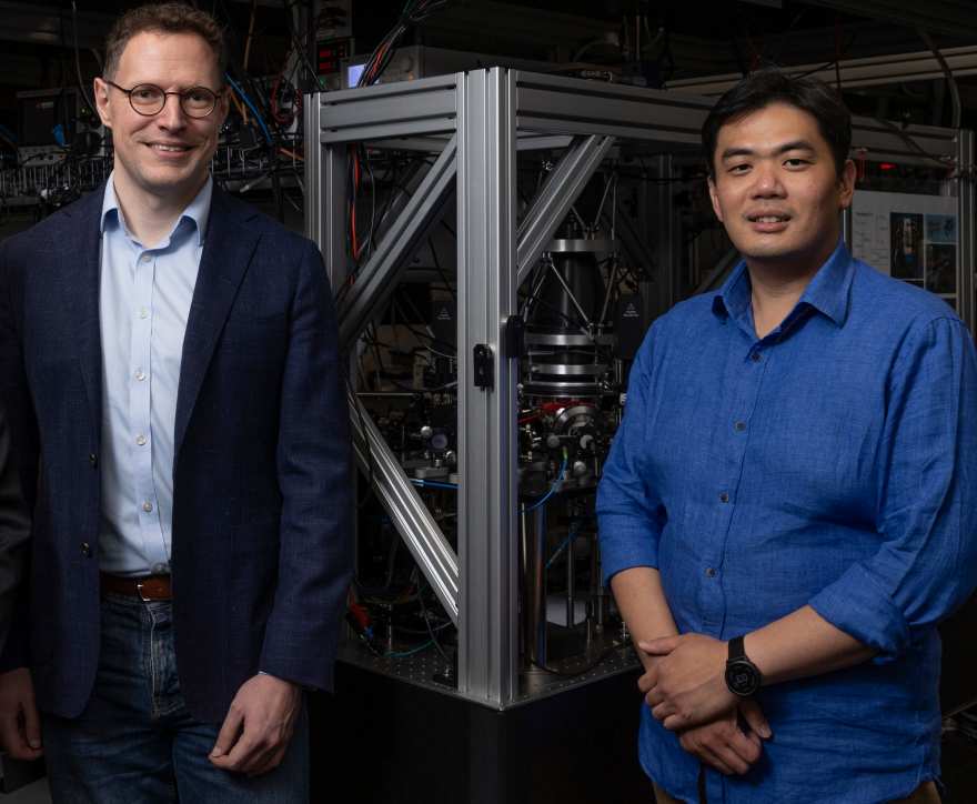 מחקר חדש מציע דרך חדשה לבחון את התהליכים המהירים האלה. שניים מהחוקרים עומדים לפני המערכת שבנו לניסוי | The University of Sydney