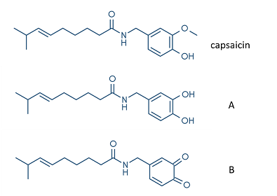 عندما يعمل الكابسيسين كمضادّ أكسدة يمكن أن يتحوّل إلى المادّة A أو إلى المادّة B.