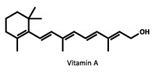 أمامكم التمثيل المختصر للصيغة البنائية للفيتامين A. ترتبط جزيئات الفيتامين A بجزيئات الزلال (البروتين) التي تنقلها إلى الدم وإلى محيط الجسم. جزيئات الفيتامين ترتبط بمنطقة معينة في جُزَيء الزلال. اختاروا الإجابة الصحيحة: