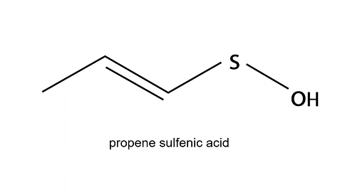 تنتج المادَّة المُسَيِّلَة للدّموع في البصل من بروبين حمض السلفونيك بمساعدة إنزيم.