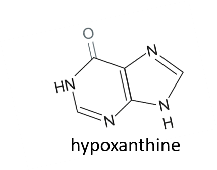 הִיפּוֹקְסַנְתִין הוא אנלוג של בסיס חנקני שנמצא במטאוריטים שונים (אנלוג = מולקולה דומה). לפניכם ייצוג מקוצר של נוסחת המבנה של הִיפּוֹקְסַנְתִין. האם הִיפּוֹקְסַנְתִין הוא בסיס חנקני פוריני או בסיס חנקני פירימידיני? בחרו בתשובה הנכונה.