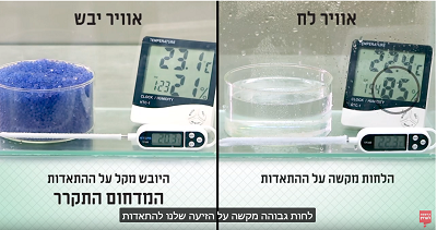 בסרטון זה התלמידים רואים עד כמה משפיעה לחות האוויר על יעילות הקירור שבזיעה. זהו סרטון המשך לסרטון "איך זיעה מקררת", שבו מודגש שהתאדות הזיעה מגופנו היא המקררת אותו, ולכן תנאי סביבה כמו רוח או לחות האוויר ישפיעו על קצב התאדות הזיעה – כלומר על מידת התקררות גופנו. בסרטון זה מתנסים התלמידים במתן הסבר לתופעה בעזרת ידע מדעי.