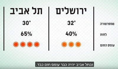 עומס החום בתל אביב כבד כי ככה זה בתל אביב. עומס החום בירושלים בינוני כי ככה זה בירושלים.