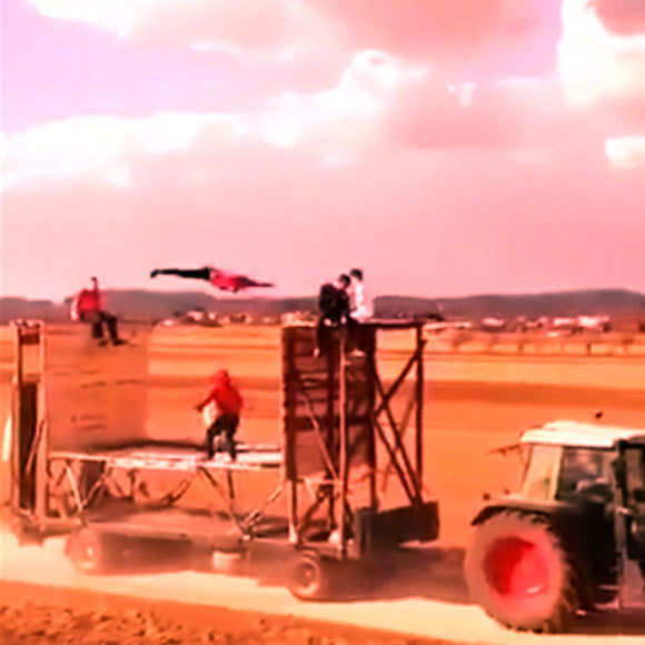 הפיזיקה מציעה הסבר פשוט לסרטון שמציג אדם מנתר על טרמפולינה בזמן נסיעה.